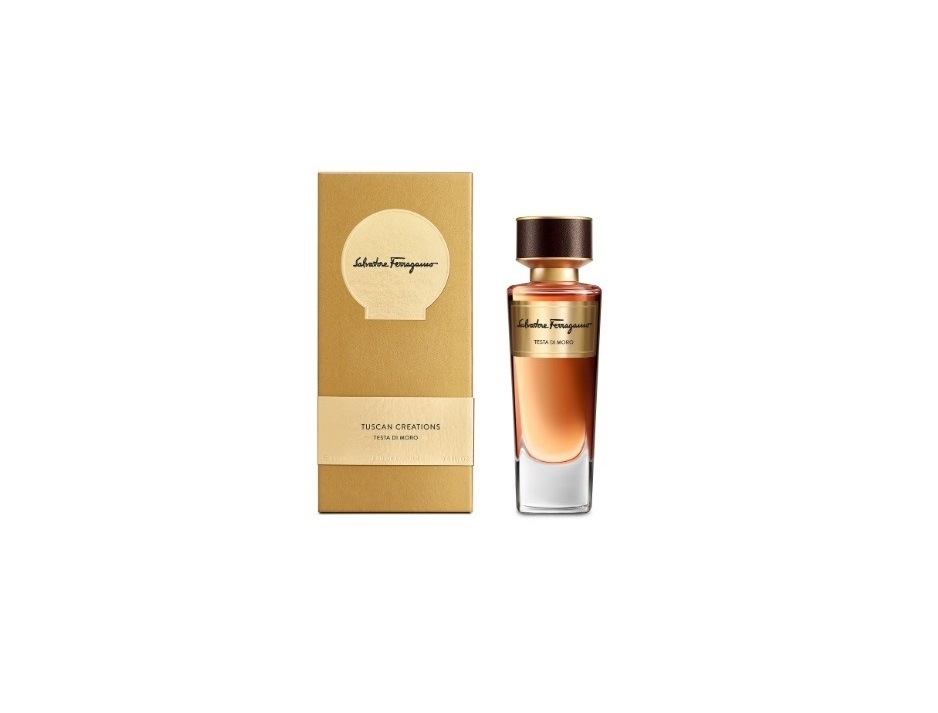 В центре пирамиды бушуют страсти, разливая в воздухе анималистичный призыв свежевыделанной эксклюзивной кожи, томный шепот восточного пачулиевого листа и прерывистое дыхание искушающего шафрана. За всем эти великолепием следует не менее мощная база Salvatore Ferragamo Testa di Moro из мягкого молочно-травяного мате, прогретого солнцем теплого сандала и амброво-смолистого загадочного стиракса.